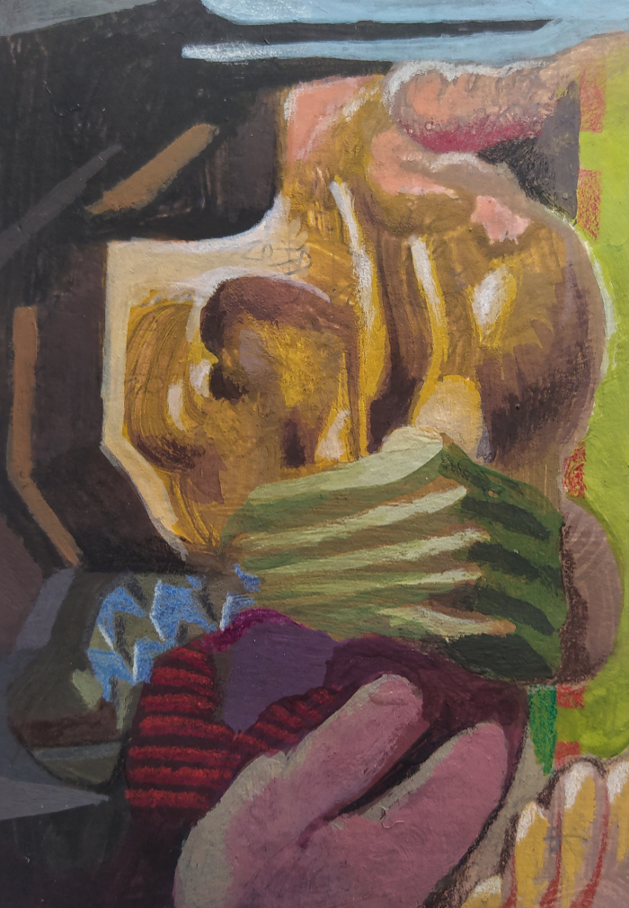 10,5 x 7,4 cm, Acryl mit Buntstift auf Karteikarte, 2026